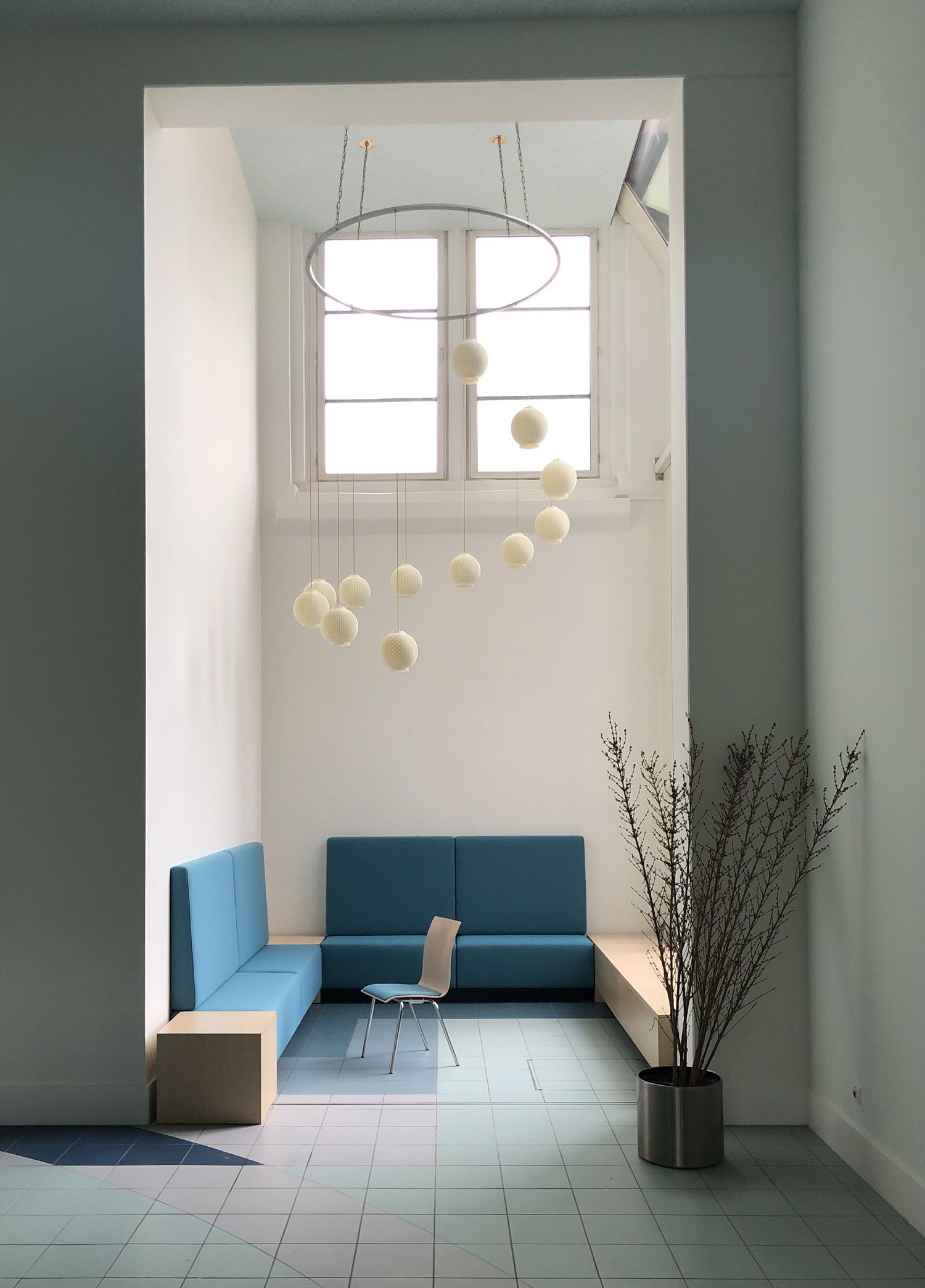 Interieur bank en ontbijttafel houten ‘Box’ interieur inrichting vergaderruimte kastenwand ‘Suzanne’ interieur ‘Kitty’ vergader / werkruimte kantinemeubel tafel en keukendetails zithoek banken